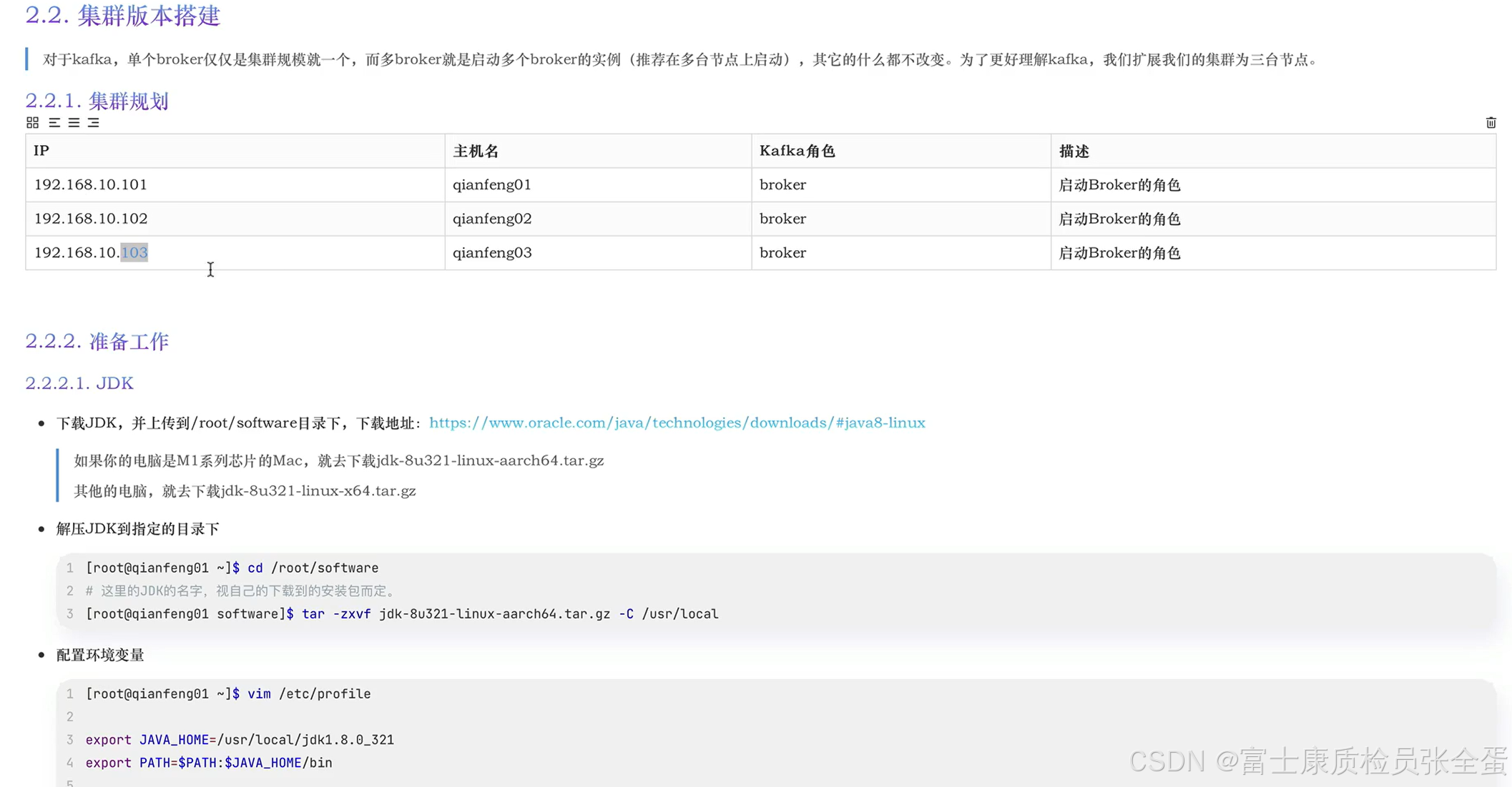 需要在3个节点上都去部署kafka的实例。在安装之前需要安装JDK,需要java环境。