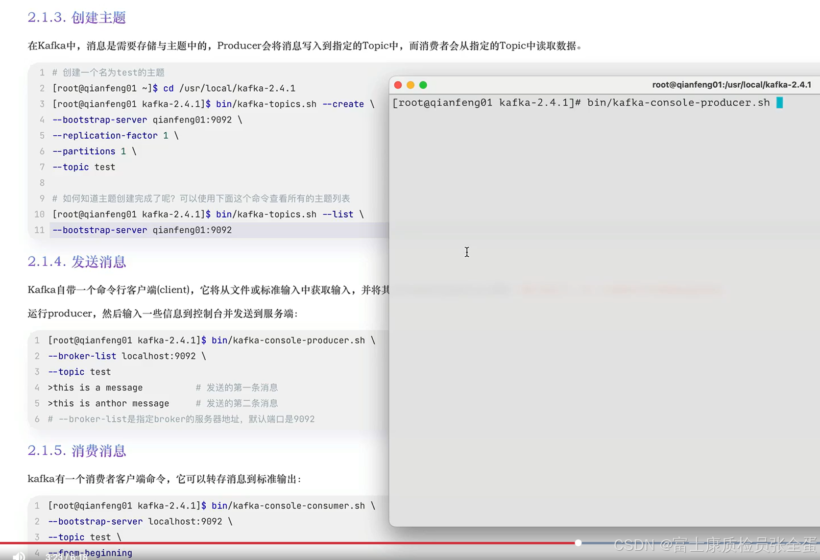 下面是简单的生产和消费消息,但是在生产和消费消息之前,首先要将主题给创建出来,也就是topic,因为生产者生产出来的消息是要在主题当中存储的,而消费者消费的消息也是从主题中进行消费的,所以要将主题给创建出来。
