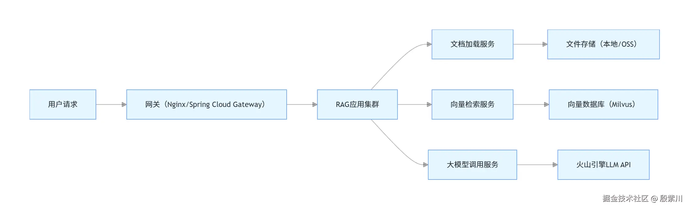 - 文档加载服务:独立部署,负责多源文档的加载和分割;
