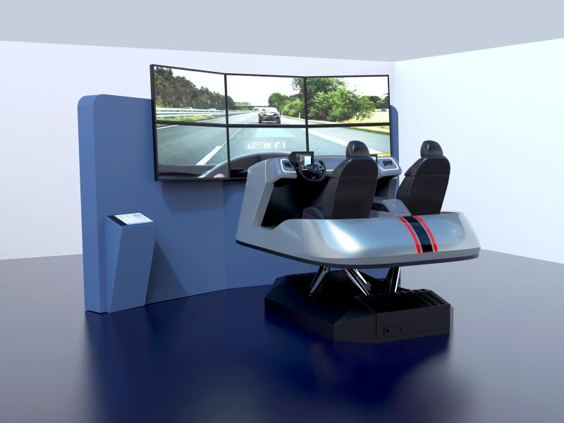 依托汽车驾驶模拟器及六自由度运动平台实现沉浸式仿真体验作为整个实验平台的基础虚拟模块,该系统以真实网联汽车试验场为原型,构建高保真、可扩展的虚拟仿真环境,无需依赖另外两个子系统即可独立运行,完成场景搭建、多车型多设备仿真、数据采集分析等核心功能,重点支撑车路协同场景的搭建与测试。该系统可有效替代部分实车场地测试,大幅降低测试成本、规避实车测试风险,支持复杂车路协同场景的快速搭建与反复验证,为车路协同及网联汽车技术的前期研发和性能测试提供安全、高效、低成本的虚拟场景支撑。同时,作为后续两个子系统的场景基础与数据交互核心,该系统可与另外两个子系统协同联动,实现功能互补、效能最大化。