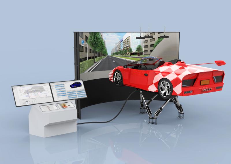 系统以真实自动驾驶汽车硬件为原型,构建高保真虚拟模型,依托汽车驾驶模拟器及六自由度运动平台,提供虚拟算力、执行机构等核心支撑,为沉浸式操作体验奠定坚实基础,具体组成如下: