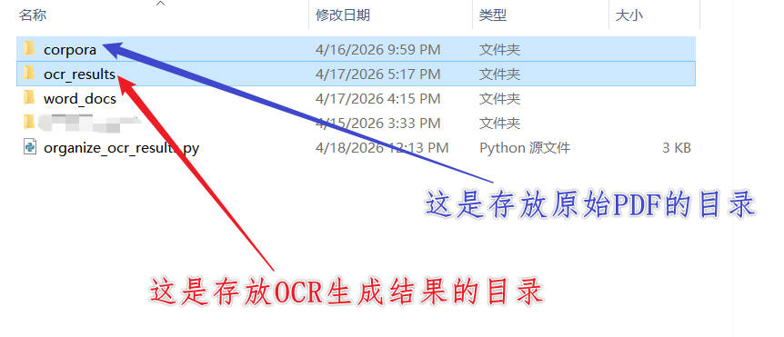 脚本需要进行轻微的修改:主要是 存放PDF的路径 和 存放OCR结果 的路径,我在脚本中已经进行了标注。