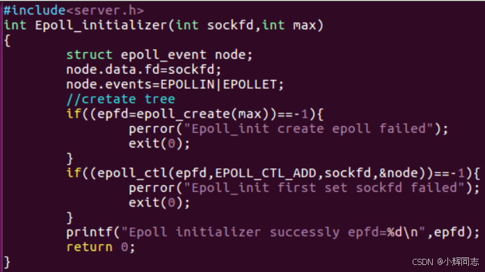 printf("Epoll initializer succuss epfd=%d\n",epfd); // 打印成功信息与 Epoll 实例 fd