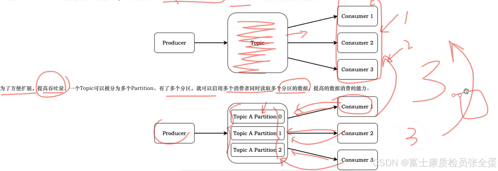 为了提高吞吐量和提高处理数据的能力,它们去做了多个分区。