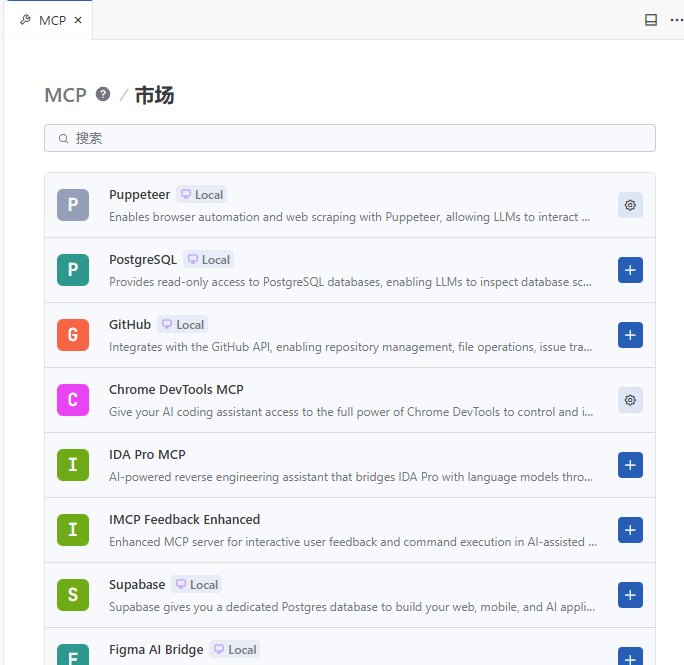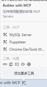 在 IDE 模式界面中,点击MCP智能体的添加更多工具,可以进入MCP管理中心