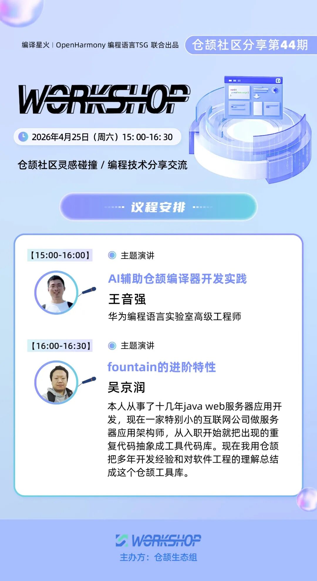 仓颉编程语言社区致力于为仓颉编程语言开发者打造活跃、开放、高质量的社区环境,社区鼓励开发者知识分享、思想碰撞、技术互助和交流讨论,社区会定期开展Workshop、三方库招募和技术沙龙等开发者活动,鼓励开发者在更多场景使用仓颉编程语言展开应用。欢迎更多开发者加入仓颉编程语言社区!