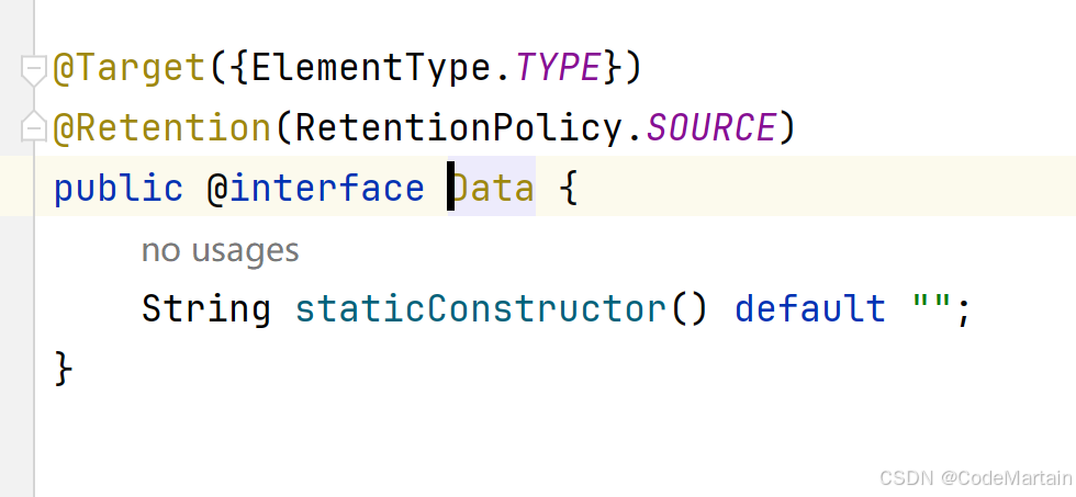 @Target({ElementType.TYPE}) ~一种可以应用到其他类/接口/枚举/注解上的注解