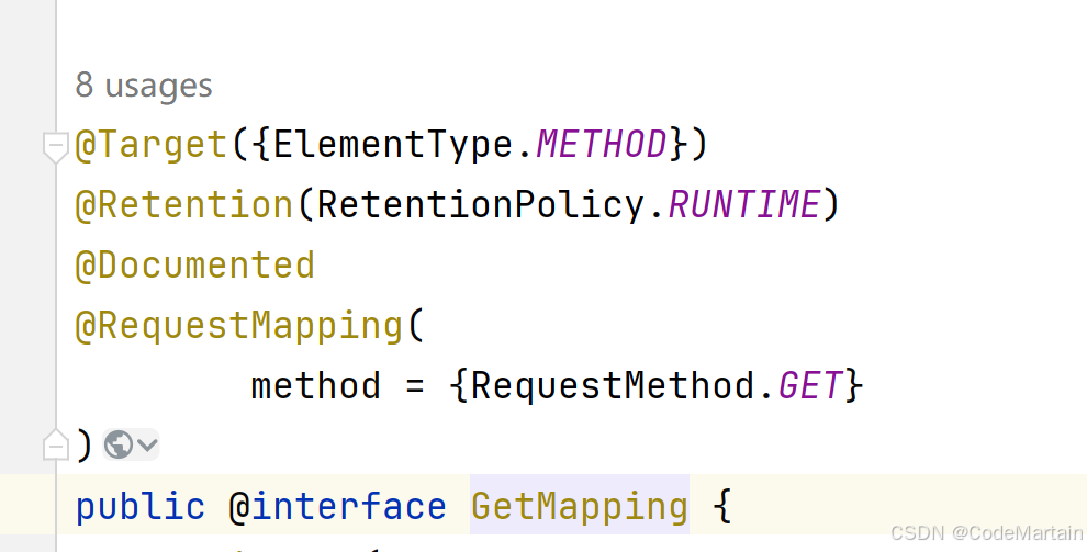 @Retention(RetentionPolicy.RUNTIME) --决定注解的生命周期
