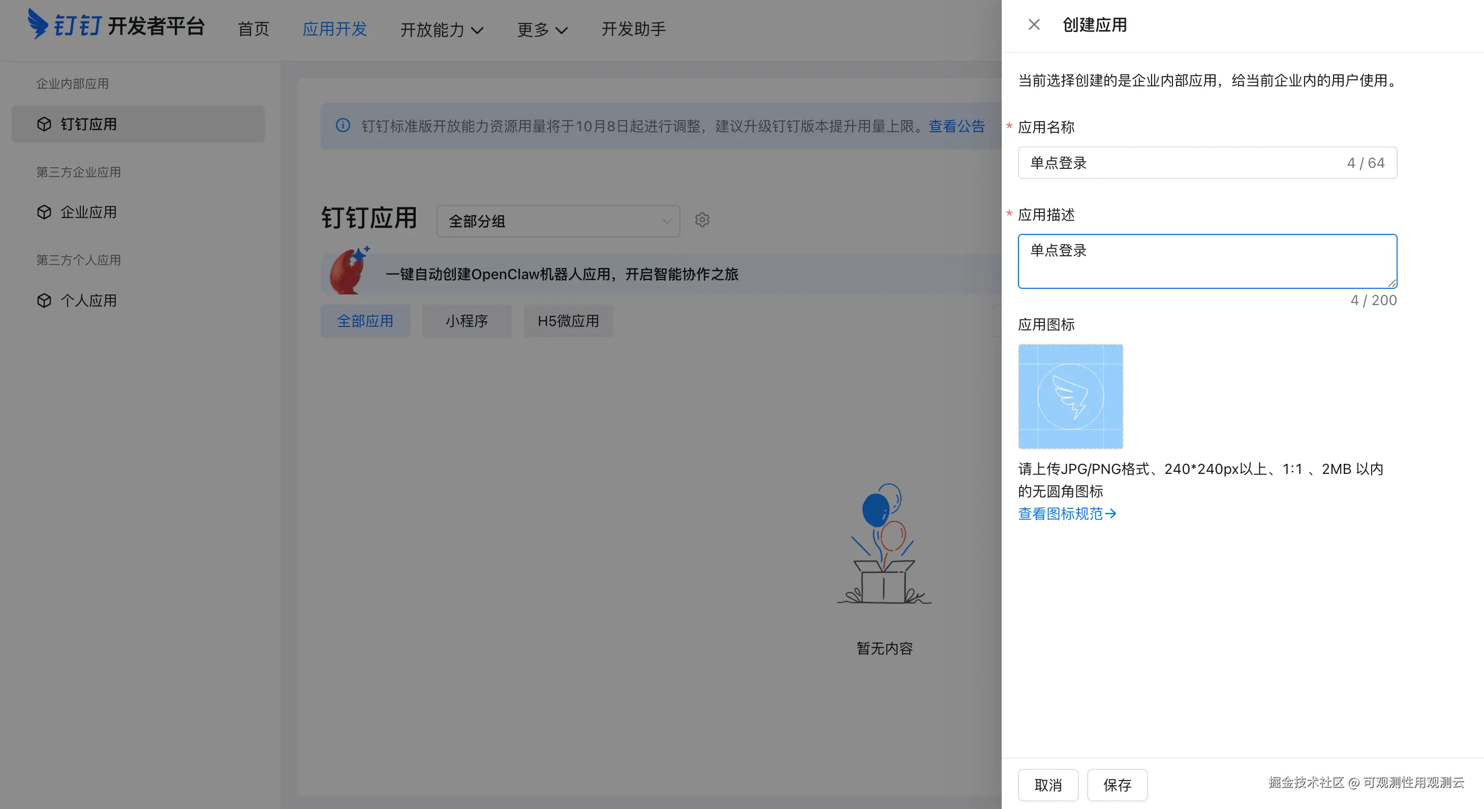 - 应用描述:可描述为"用于观测云的单点登录应用"