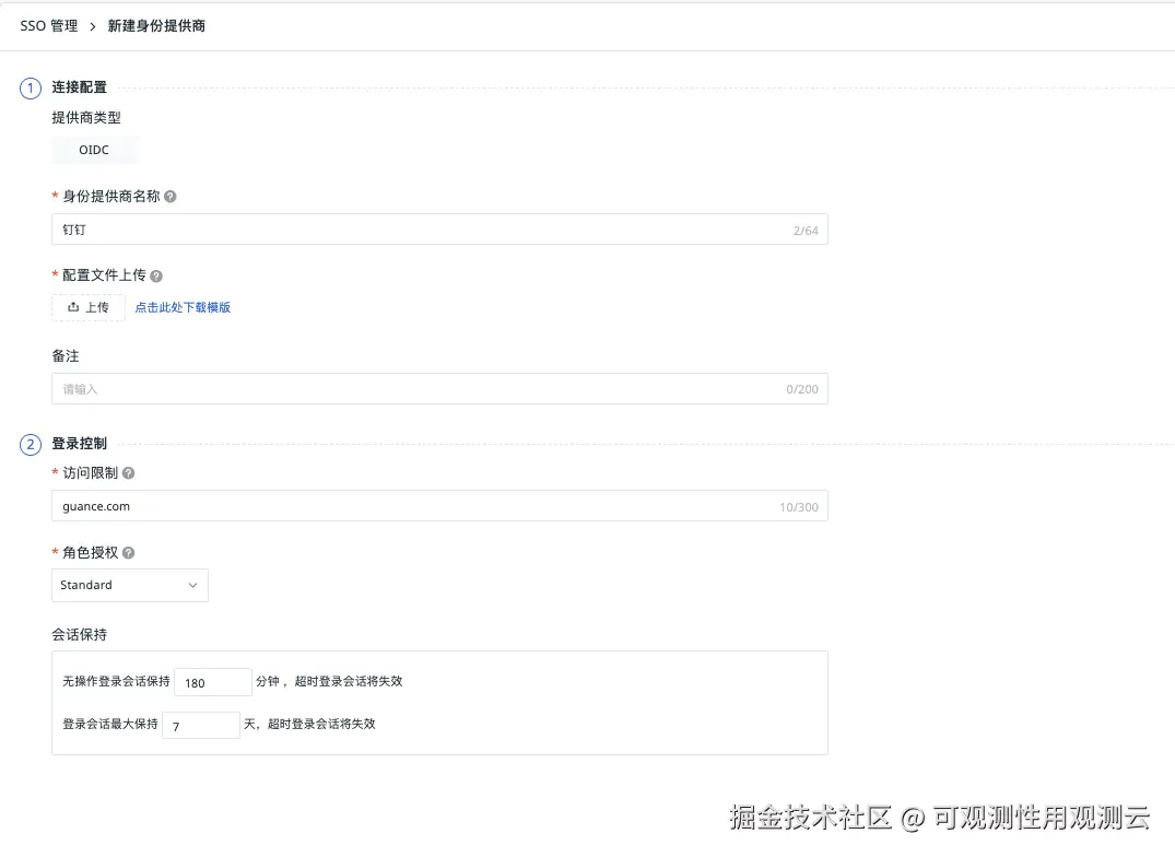 | 身份提供商 | SSO 服务商名称,可自定义 |