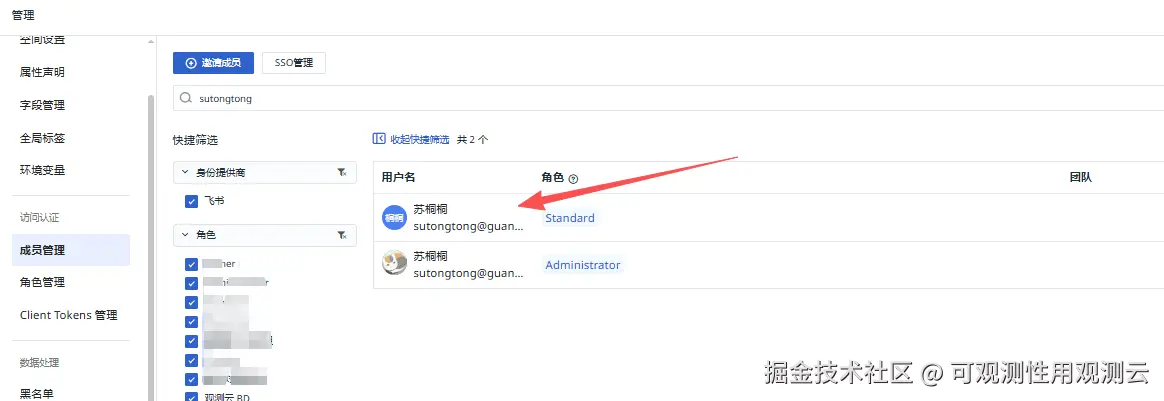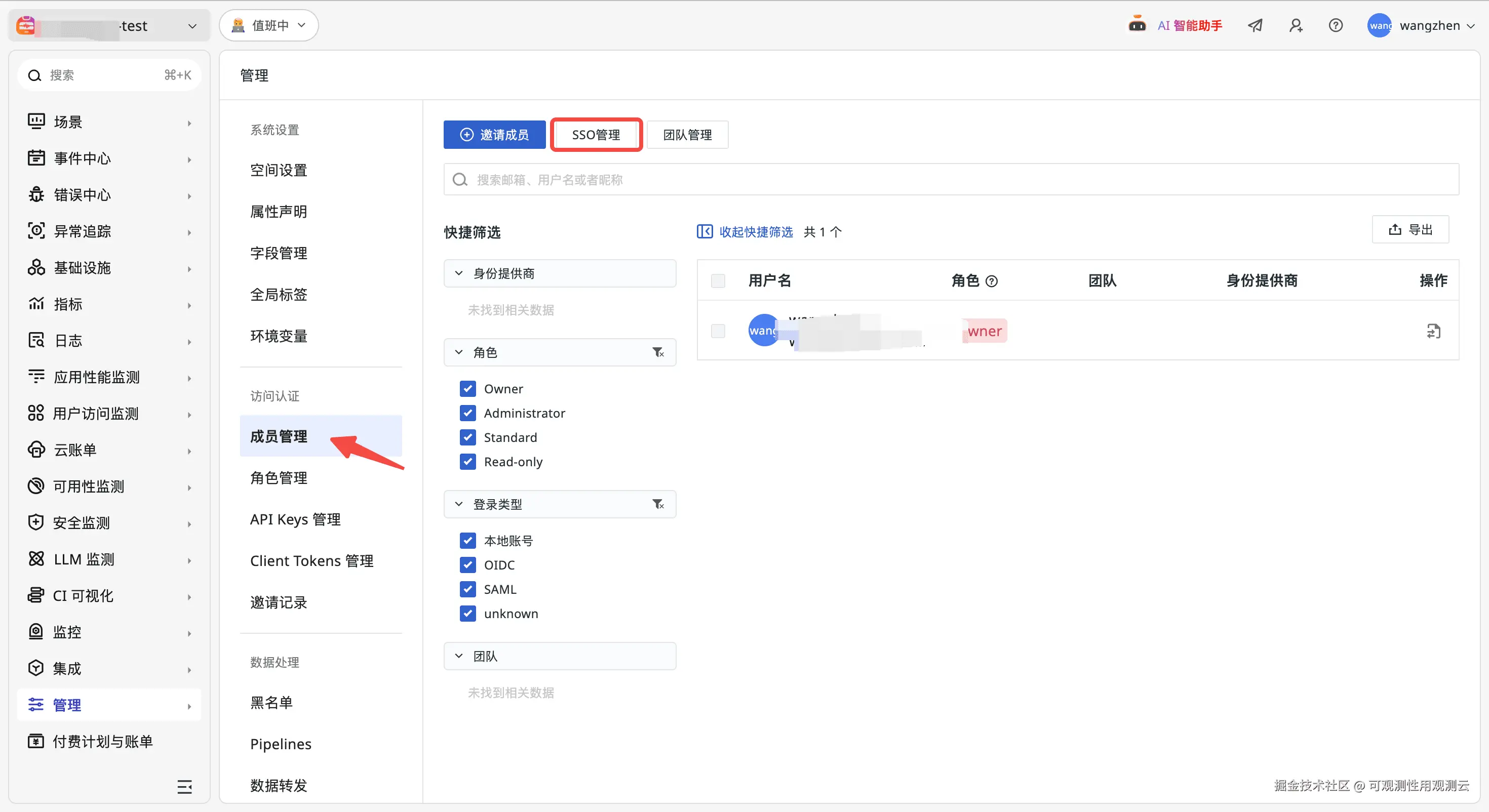 2、进入管理 → 成员管理 → SSO 管理