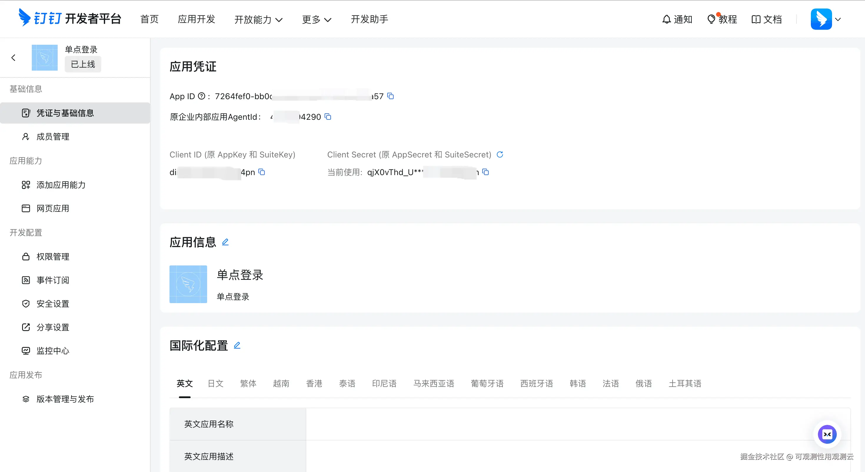 1、应用创建完成后,进入应用详情页面
