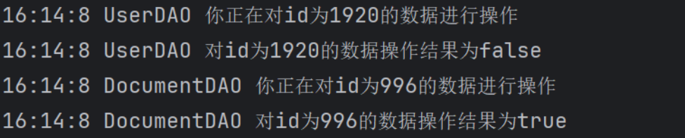 javapublic class UserDAO implements AbstractUserDAO { @Override public boolean updateById(int id) { return id == 7683; } }javapublic class DocumentDAO implements AbstractDocumentDAO { @Override public boolean deleteById(int id) { return id == 996; } } -
