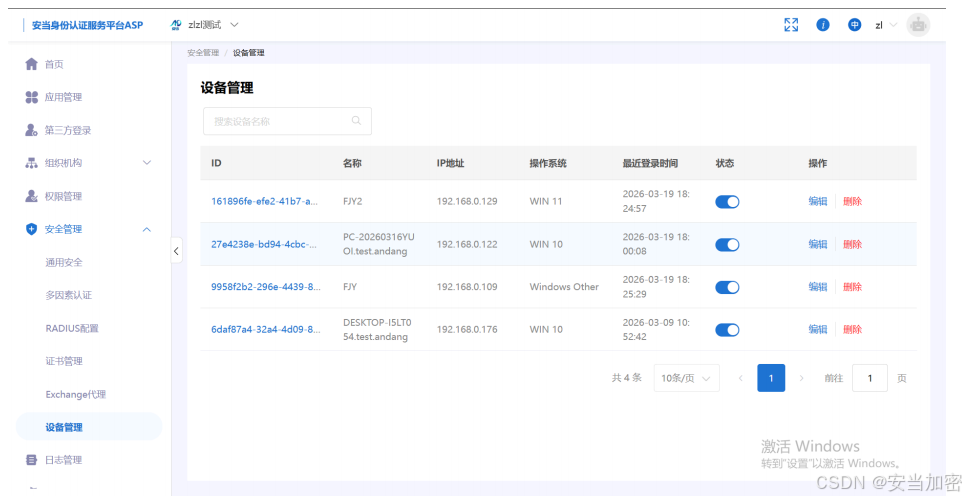 [安当 SLA] → 本地比对模板(SM4 加密存储)