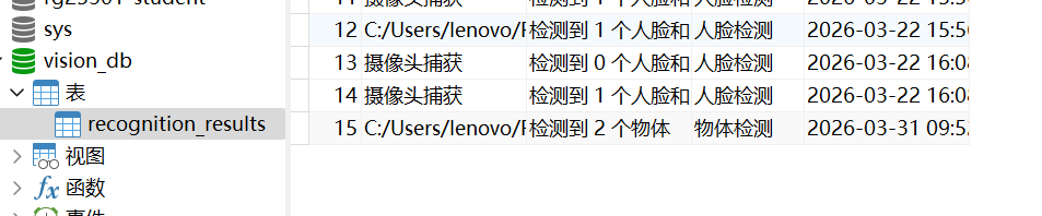 创建MySQL数据库表存储图像处理结果: