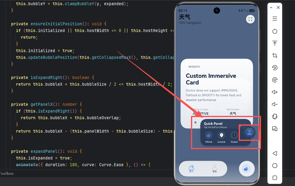 摘要:很多 HarmonyOS 项目在完成 HDS 悬浮页签、沉浸光感之后,页面已经足够"轻"和"系统",但高频快捷入口依然缺一个顺手的落点。本文结合一次真实改造过程,讲清楚我们为什么先做页面内悬浮球、它到底解决了什么问题、实现里最关键的交互细节是什么、踩了哪些典型 ArkUI 坑,以及如果后续想升级成应用内全局悬浮球,