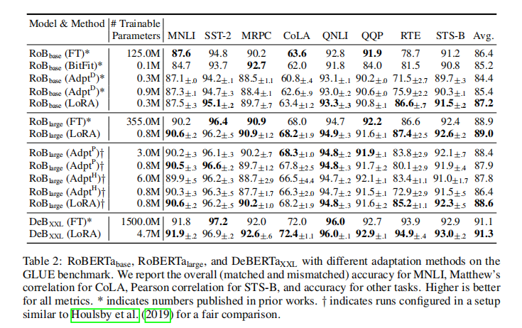 - 在 RoBERTa、DeBERTa、GPT-2、GPT-3 等一系列模型上,效果持平甚至超越全参数微调;