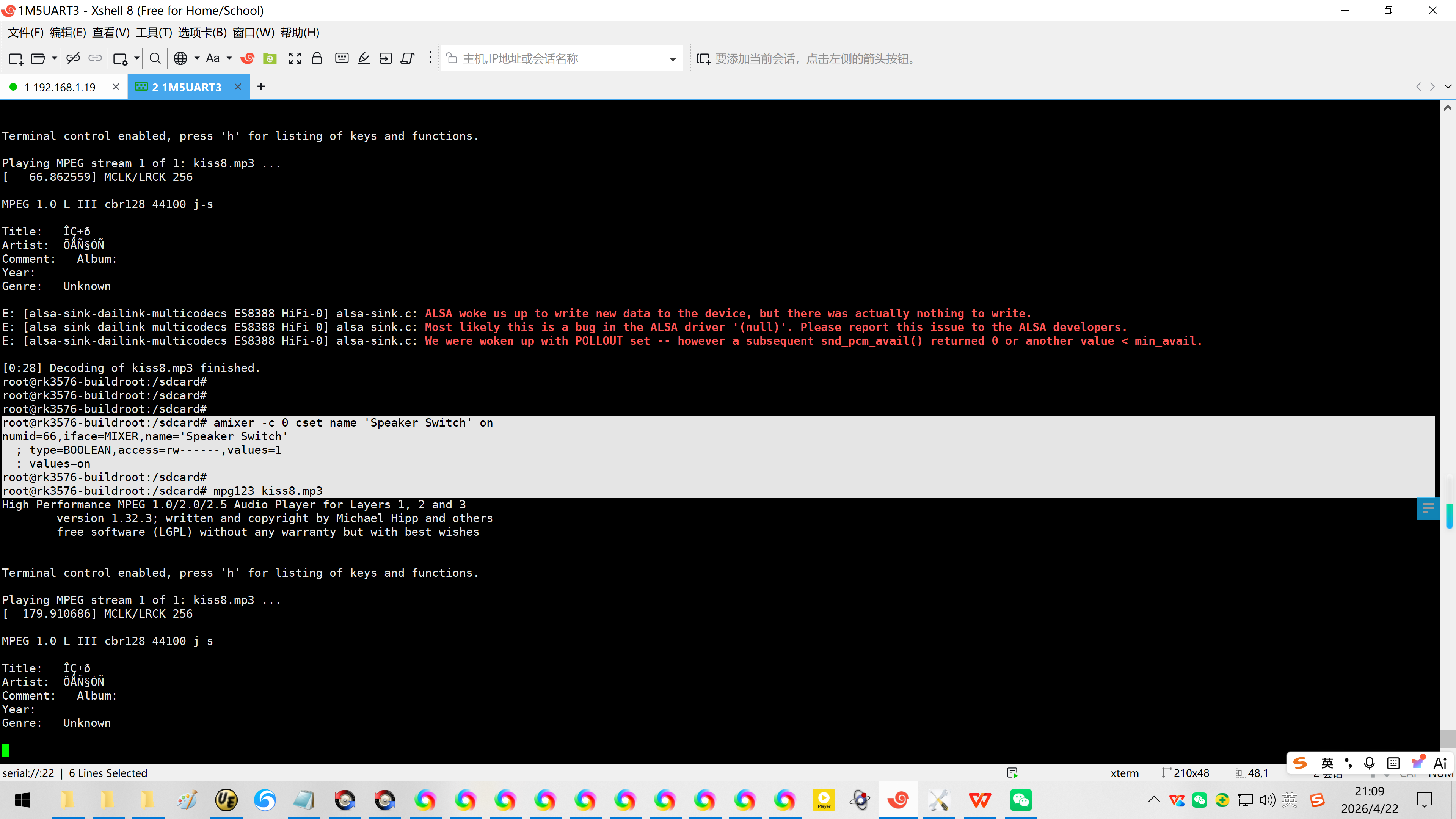 20260422给万象奥科的开发板HD-RK3576-PI适配瑞芯微原厂的Buildroot时使用mpg123播放mp3音频