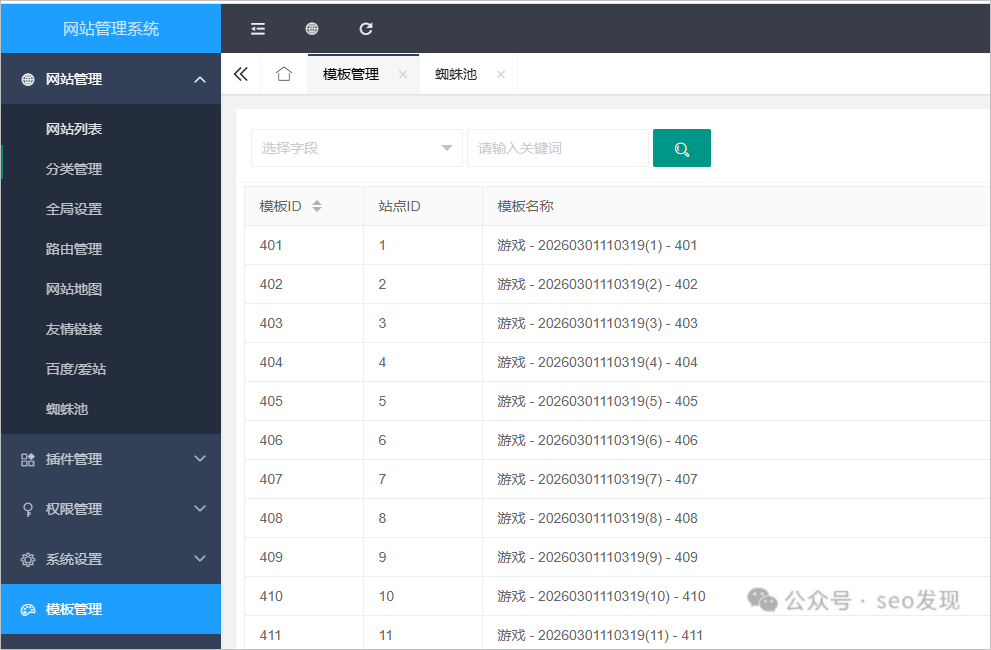 3、每个网站的模板一定要不一样,我们自带了400套游戏模板;