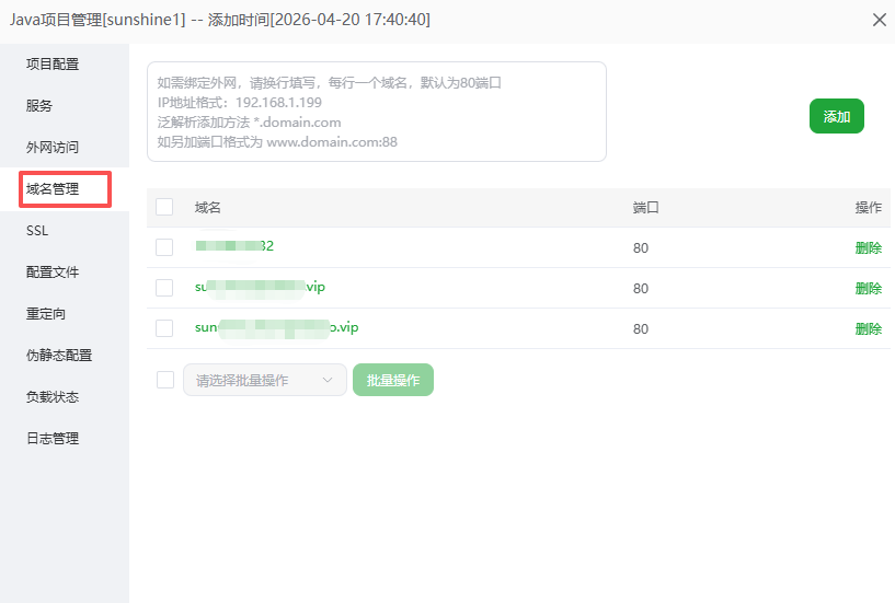 增加使用的域名到java项目-域名管理