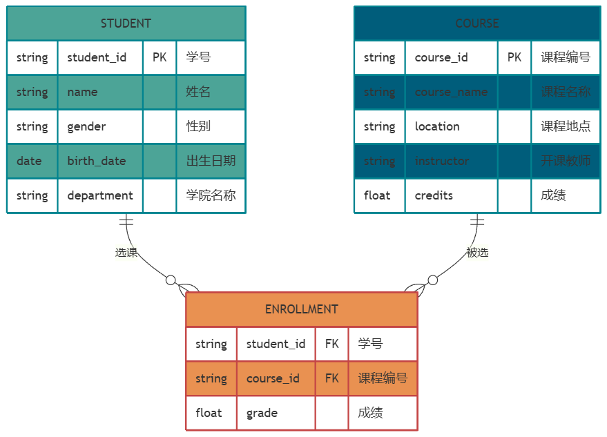 - 外码 / 外键(Foreign Key):一个表中的属性,引用另一个表的主码,用于建立表之间的关系。