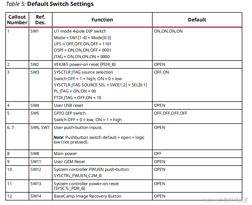 比如文章中的,SD卡启动,VEK385理论上没有SD卡启动模式,除非自己设置了后门。SD卡烧录都是双重引导,即SC启动+versal OSPI+SD卡+UFS烧录,这是我亲测有效流程。SW1即启动模式,目前就UFS,OSPI,JTAG。
