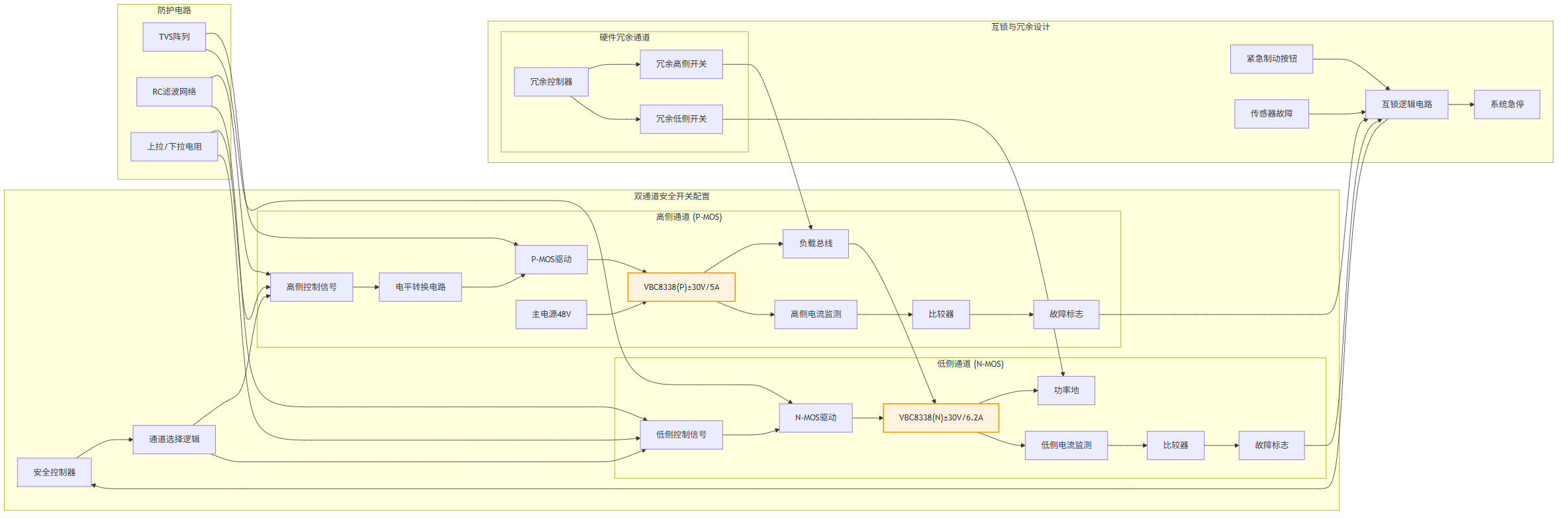 - 安全冗余:在最高安全等级要求下,可采用双路独立MOSFET串联或并联方式构建硬件冗余安全通道。