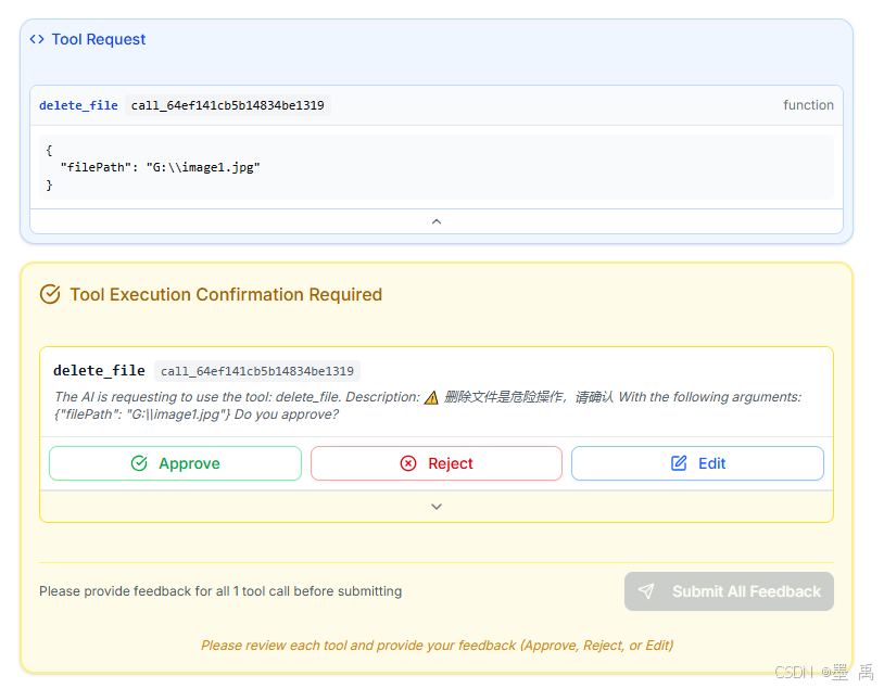 在 AI Agent 实际生产应用中,部分高风险操作(如文件写入、SQL 执行)需要人工监督,避免模型误操作导致数据丢失或安全问题。