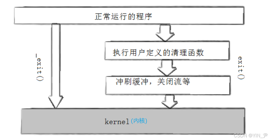 exit()是库函数:它会在调用 _exit() 系统调用之前,先执行用户态的清理工作,其中就包括刷新所有标准I/O流的缓冲区 。然后再调用 _exit() 陷入内核进行相关的各种操作(比如进程相关资源的释放等)