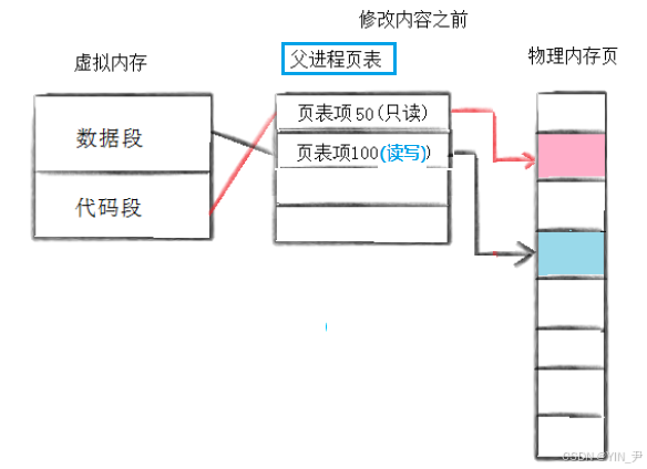 后来,父子进程中的某一方比如子进程,修改了某个数据。但是这时发现页表中的权限是只读!