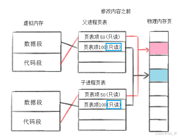 但是,此时操作系统会把会把父子进程对于数据的权限改为只读,注意这里修改的是页表中的权限,不会修改vm_area_struct中的权限(VMA 权限仍然是可写的)