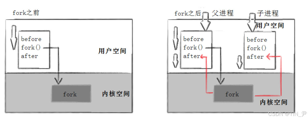 首先,返回值的不同使得我们可以区分父子进程,从而实现分流。