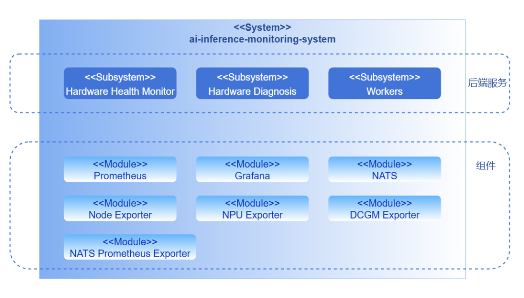 - Hardware Health Monitor :· 硬件健康检测模块作为独立运行的采集组件,以周期性任务方式主动执行指标采集与上报 。模块在运行过程中会按照固定采集周期调用底层接口(DCMI、NVML)或解析系统日志(dmesg),获取设备运行状态与健康信息。采集结果通过NATS实时发布至诊断模块,实现采集与诊断的解耦。