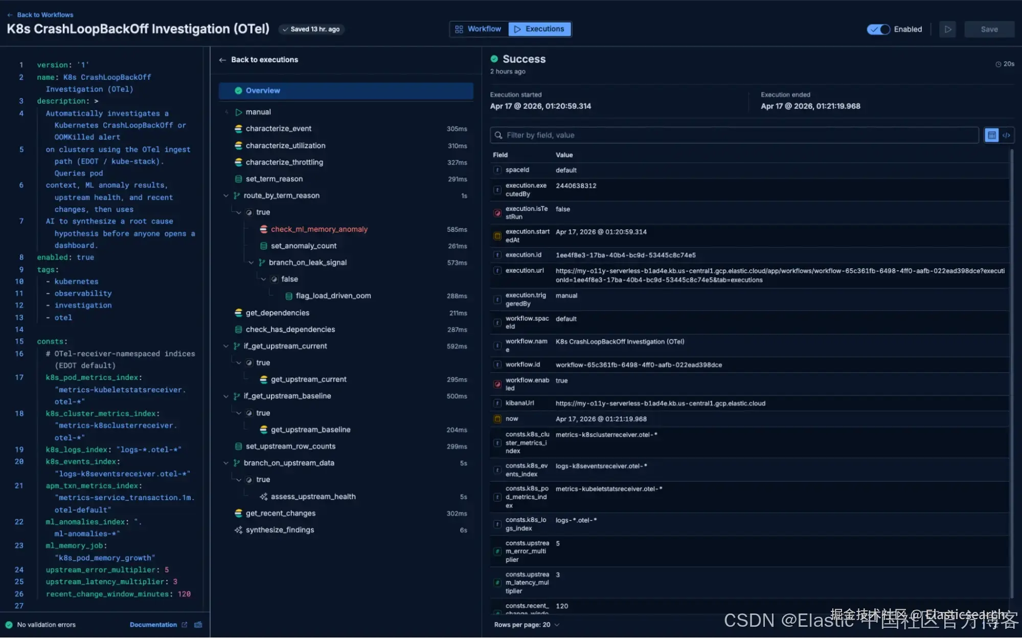 Alert rules 告诉你出了问题,ML modules 告诉你模式,而 Elastic Workflows 会自动执行诊断------在 alert 触发的瞬间就开始运行。