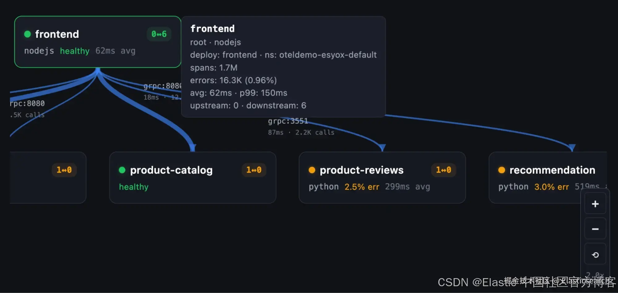 通过缩放、平移和悬停操作,你可以获取所有必要的细节,以理解复杂的服务关系: