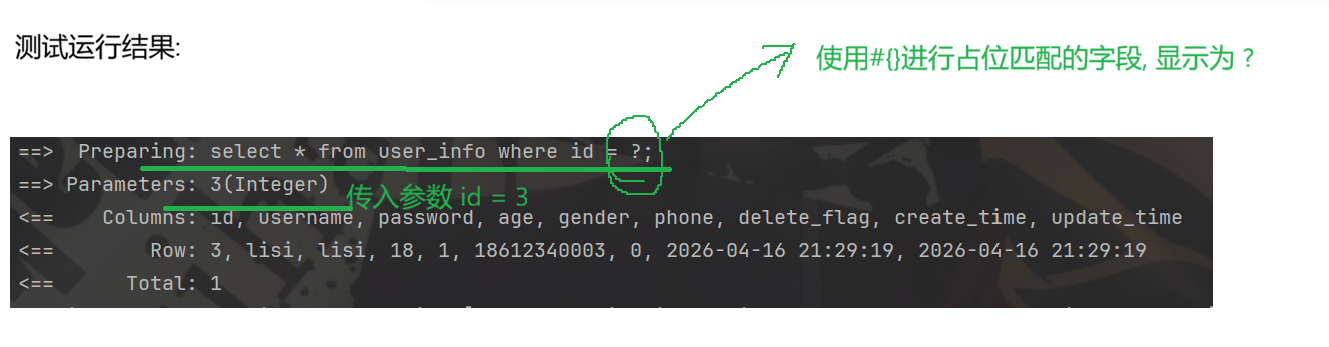 #{}(PreparedStatement): * 它不只是在 Java 里占位。-