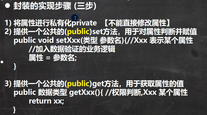 把属性私有化,对外提供公共的访问方法,隐藏内部实现,只暴露必要接口。