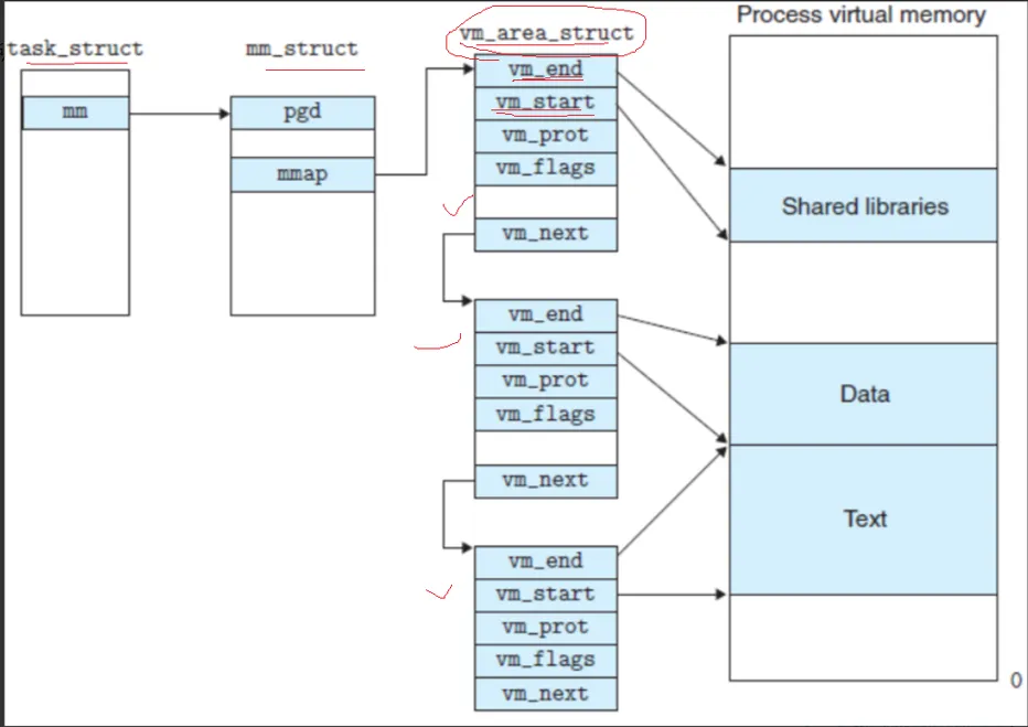 有一个指向 vm_area_struct 的一张表的指针。 那么这个 vm_area_struct 是什么呢?