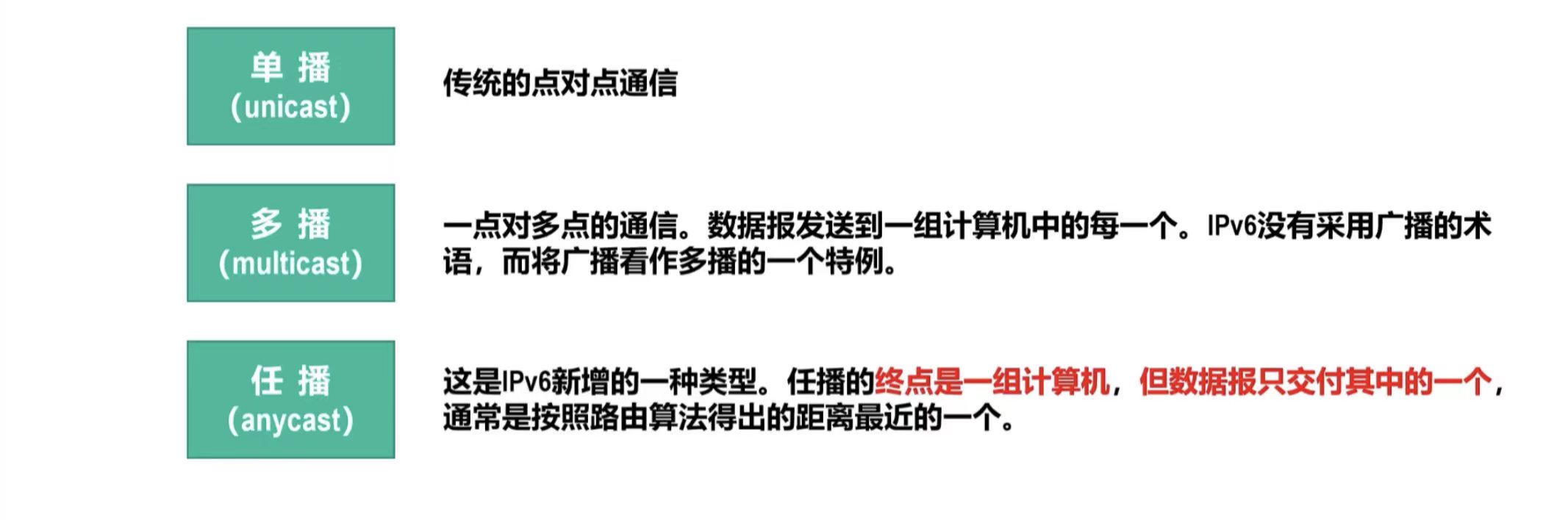 IPv6数据报的目标地址有三种基本类型: