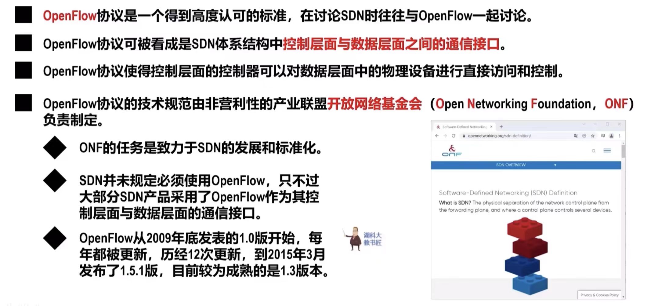 SDN的核心思想:++把网络的控制层面和数据层面分离,而让控制层面利用软件来控制数据层面的许多设备。++