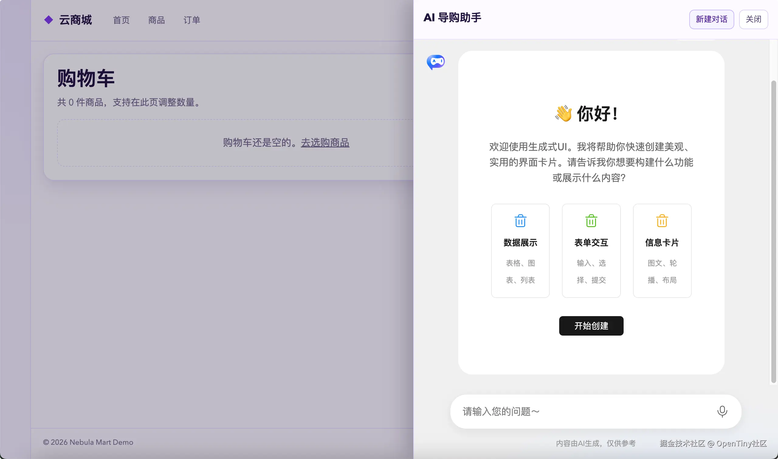 - GenUI SDK 代码仓库:github.com/opentiny/ge... (欢迎star ⭐)