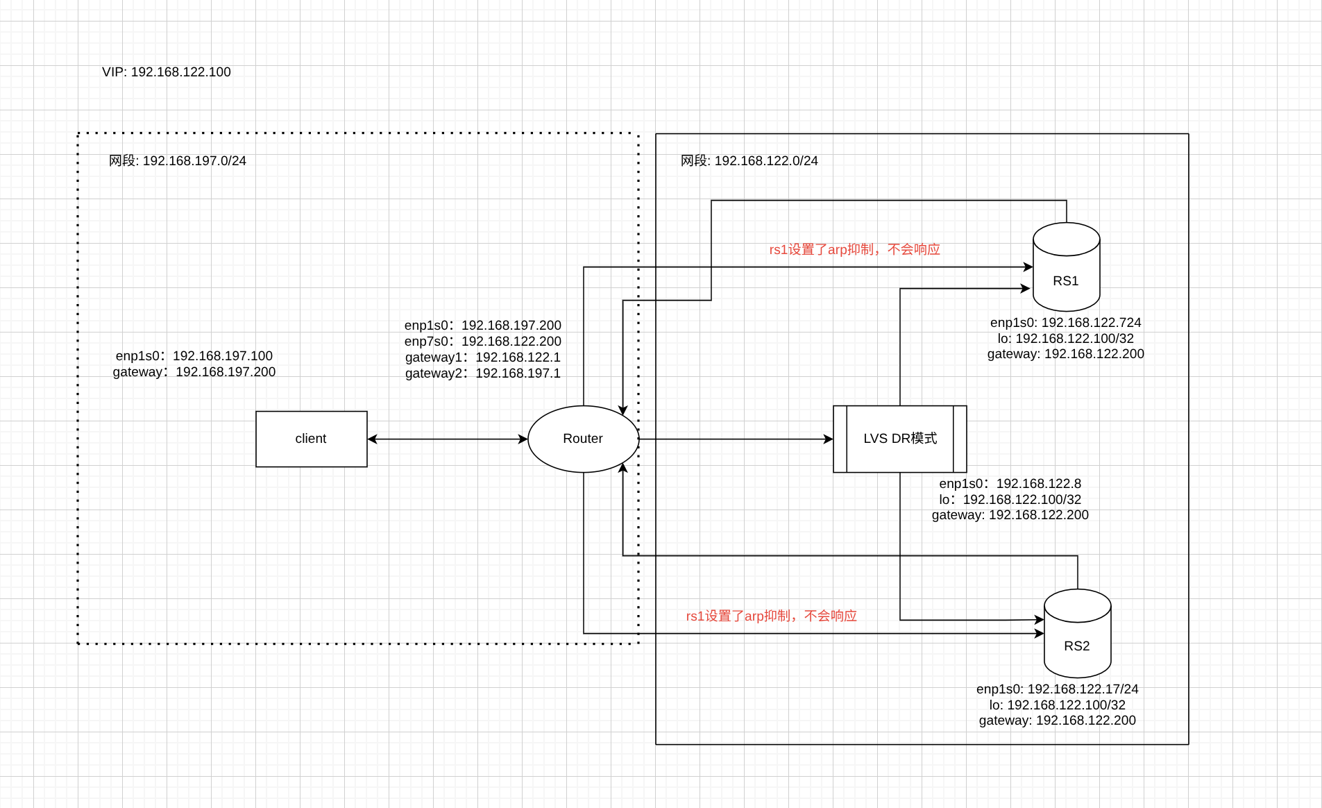 client访问了vip,vip网络数据包不是本网段的,让后检查自己的网关是192.168.197.200于是就去找路由器了,这个路由器的另一个接口是这个网段的,于是路由器就在这个网段进行arp协议洪泛。