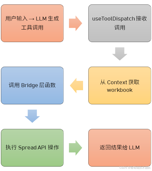 - 鉴于 SpreadJS 功能跨度极大,且大模型存在上下文限制(一次性暴露过多工具极易导致"认知过载"),系统放弃了单一通用的工具设计。取而代之的是原子化执行策略 :将复杂操作拆解为
