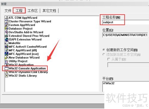 1、 启动VC++6.0后,双击打开程序,依次选择菜单栏中的文件→新建,在弹出窗口中切换到工程选项卡,选择Win32 Console Application,并为项目输入名称。首次使用时需指定保存路径,随后勾选建立一个空工程,最后点击确定完成创建。