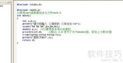 5、 顺序结构通常包含输入、处理和输出三个环节。以海伦公式计算三角形面积为例进行说明,其中符号//后的内容为注释,不参与程序执行。