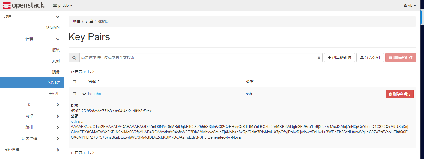 新增密钥对