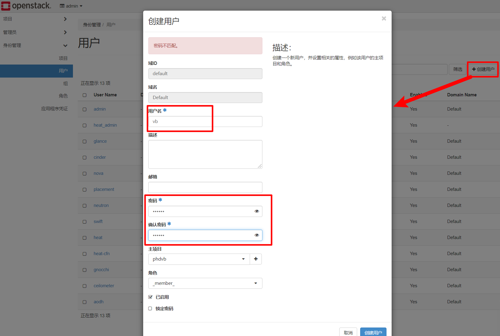 1. 创建一个租户/项目