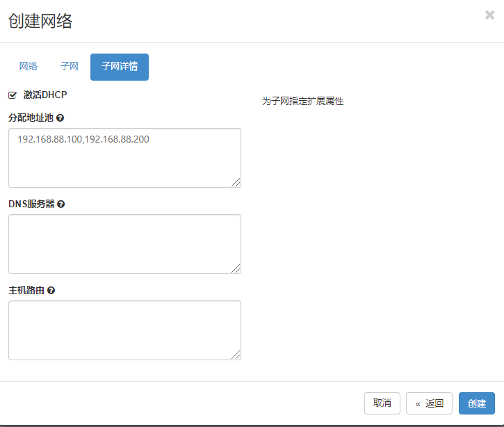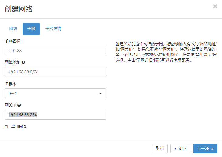 控制节点和计算节点 节点用的网段是153,NAT。这个153网段是可以通外网的。这个153网段未来要作为虚拟公网提供的,所以创建私网的时候,你可千万不要使用153这个NAT网段。比如我挑一个 88 网段作为虚拟私网网段。192.168.88.0/24