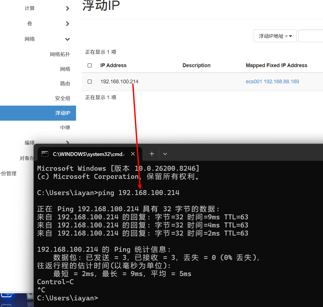 宿主机ping 浮动ip