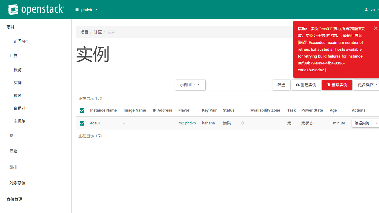 grep 'ccb28552-6af1-4902-942d-2aaadd5a5d45' /var/log/nova/nova-compute.log从日志来看,问题的根本原因已经很清晰了:Nova 无法通过 iSCSI 连接到 Cinder 卷,导致实例启动失败。